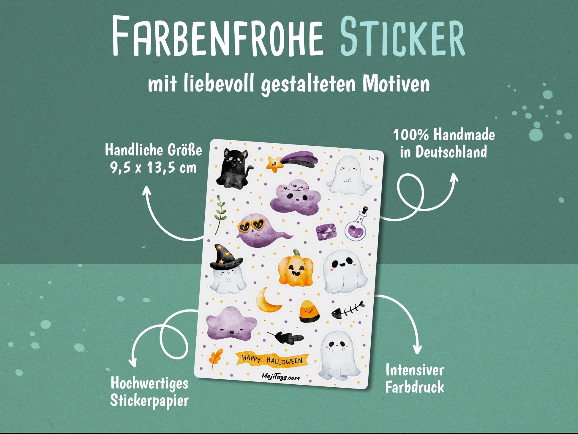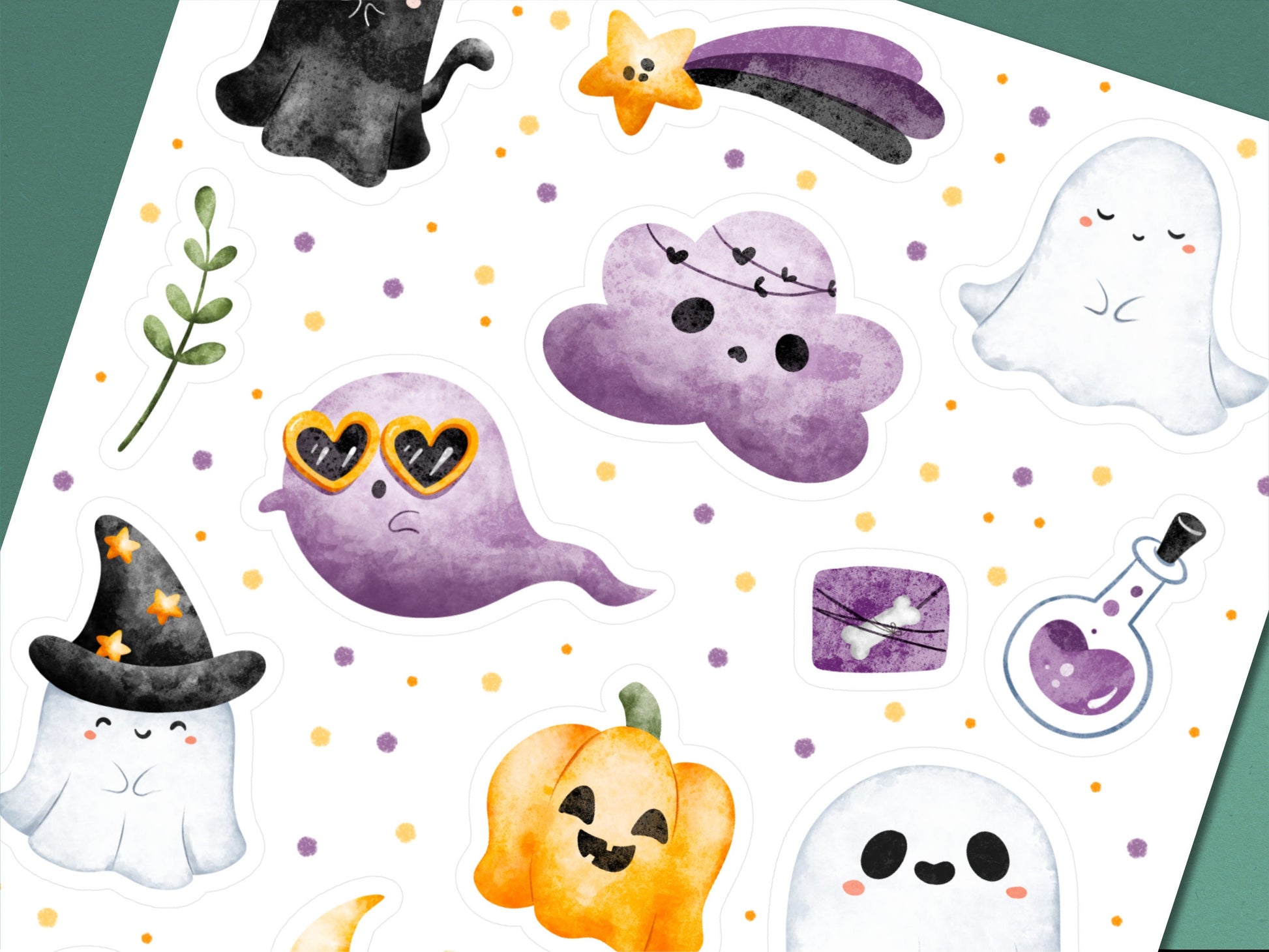 👻 Geisterstunde zum Aufkleben – Halloween Stickerbogen mit 19 liebevoll gestalteten Stickern