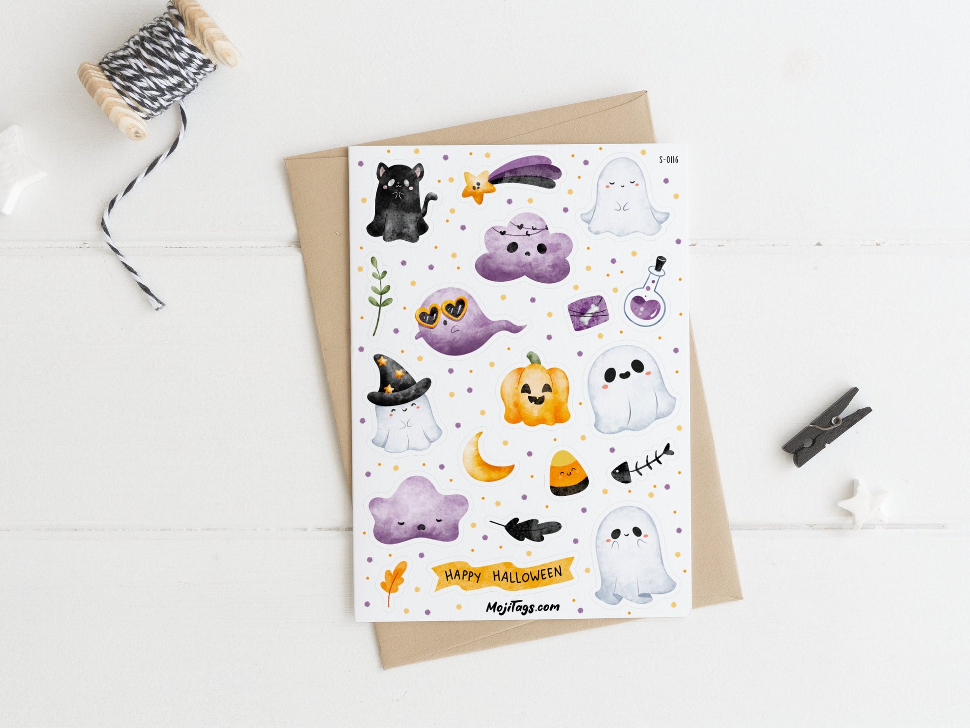 - 19 einzigartige Geister-Sticker auf einem Bogen (13,5 × 9,5 cm)