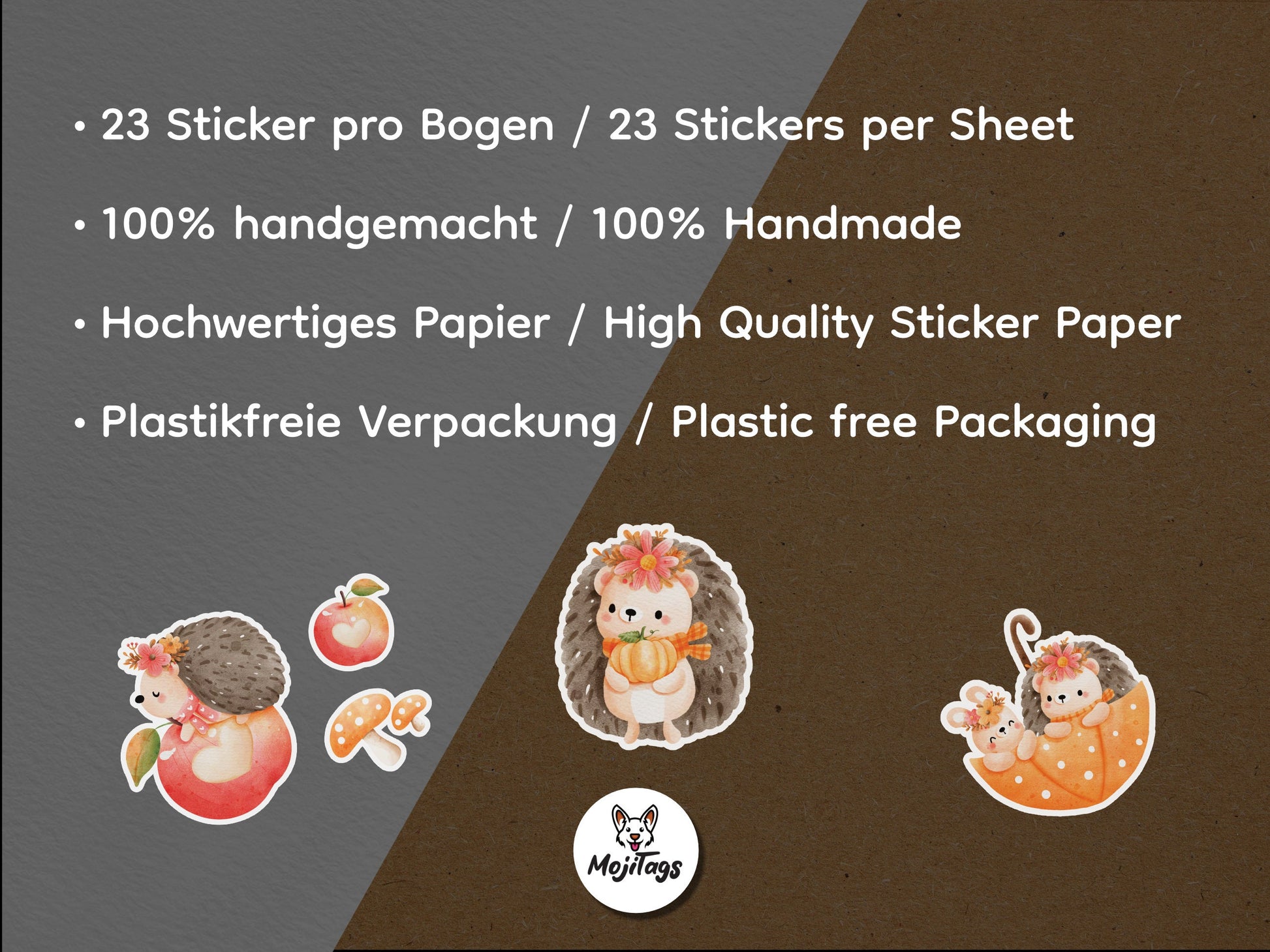 Auf jedem Bogen findest du 23 einzelne Aufkleber mit verschiedenen Motiven, die du ganz nach Lust und Laune kombinieren kannst. Ob bunte Blätter, niedliche Igel oder kleine Wald-Details – hier steckt ganz viel Herbstliebe drin.
