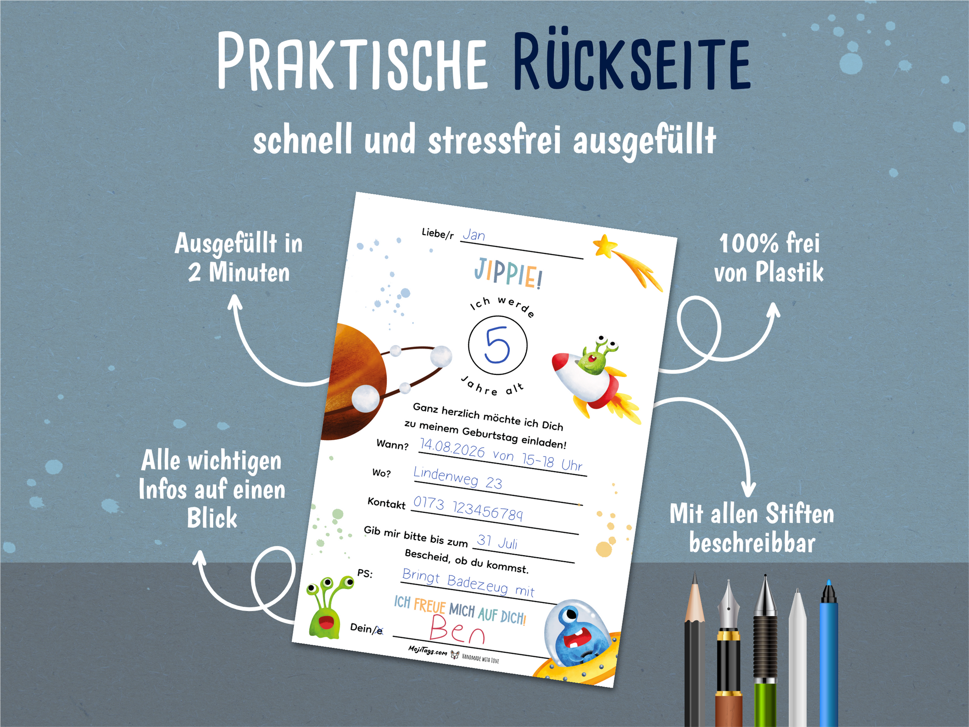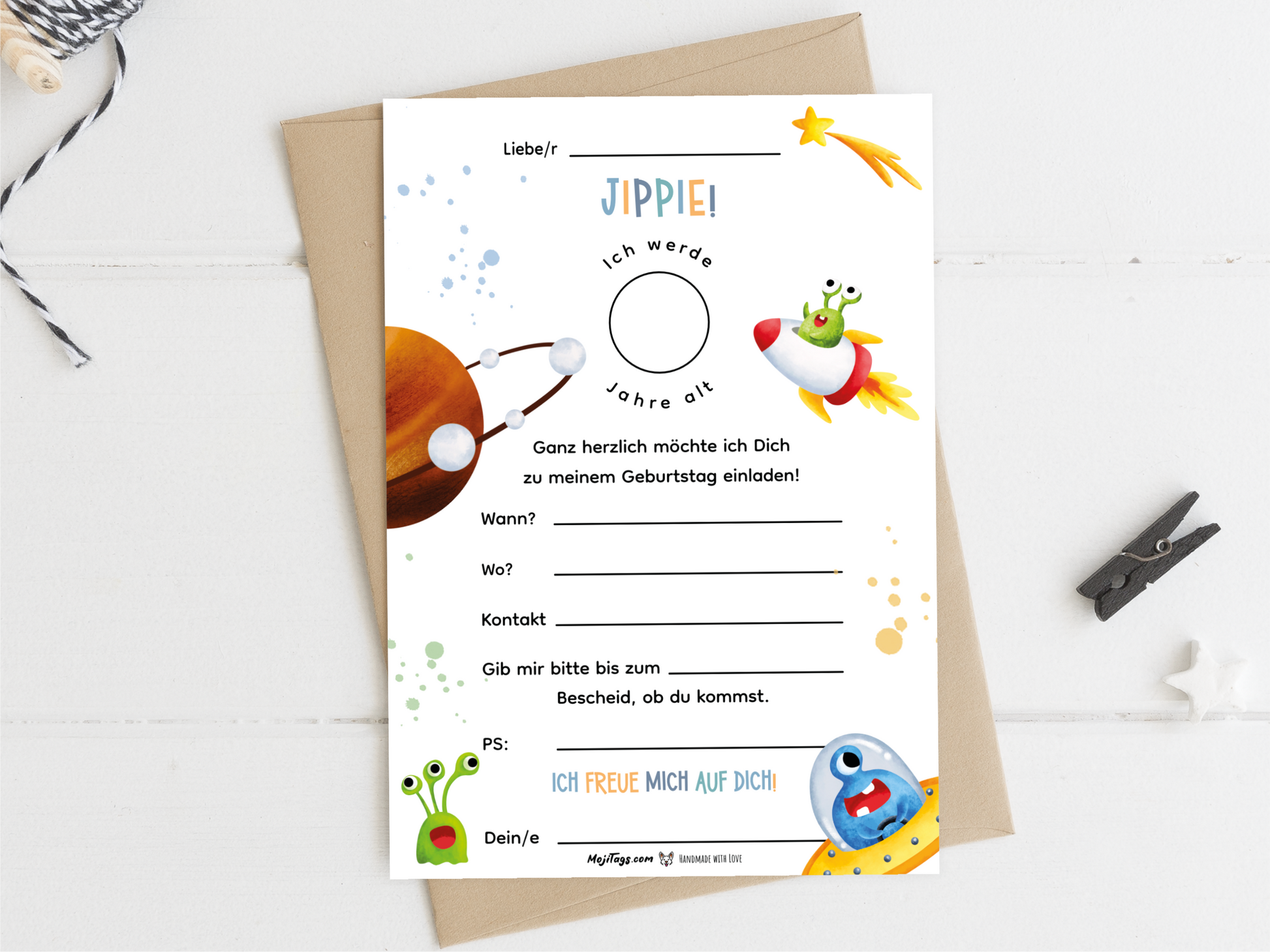 Mach dich bereit für eine intergalaktische Geburtstagsparty – mit diesen Einladungskarten hebst du definitiv ab!