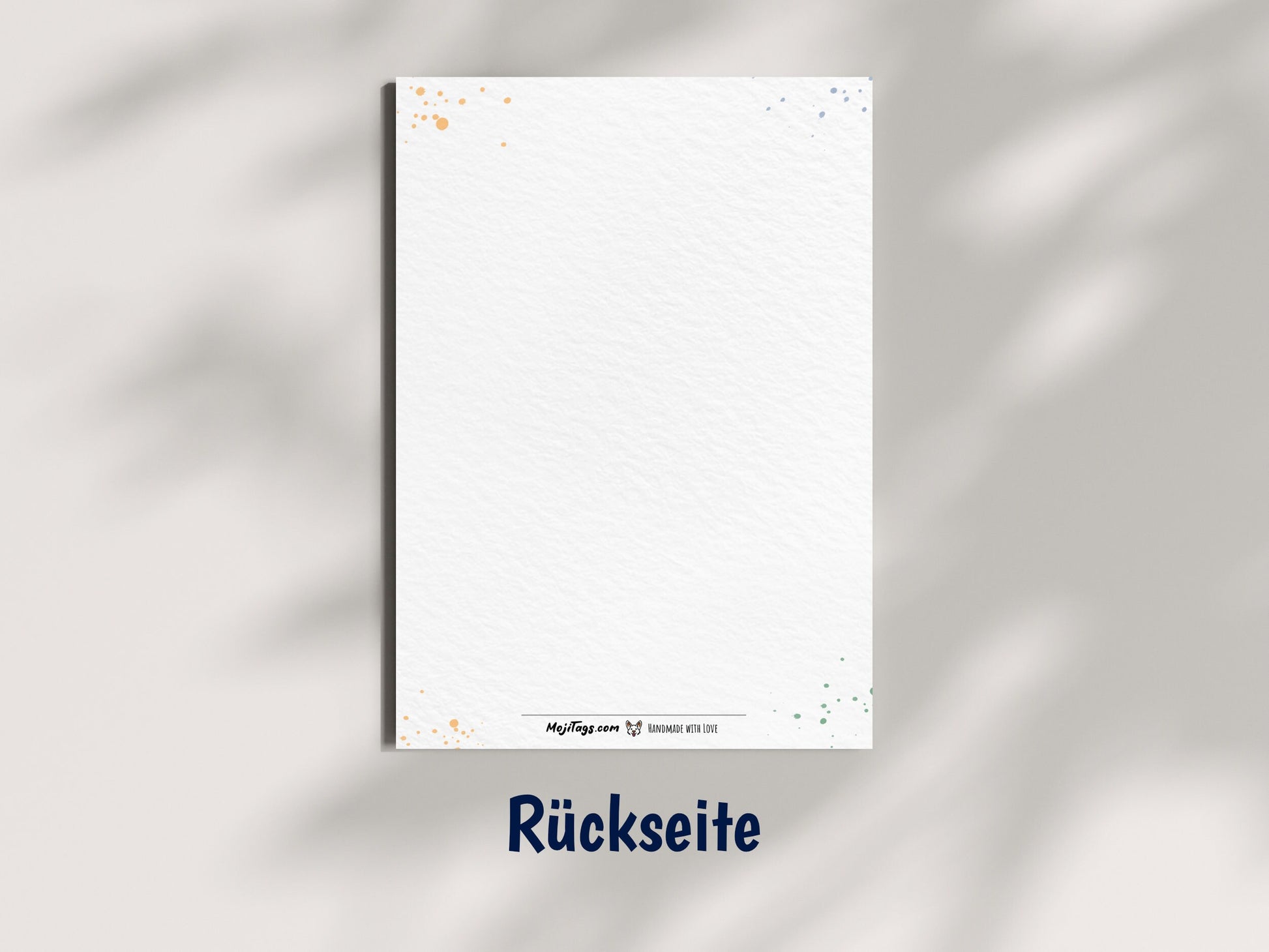 Gedruckt auf hochwertigem 300g/m² Postkartenkarton, ist die Karte besonders stabil und fühlt sich ebenso edel an wie sie aussieht. Die Rückseite ist unbedruckt und bietet viel Platz für deine persönlichen Glückwünsche, sei es mit Kuli, Filzstift oder Feder.
