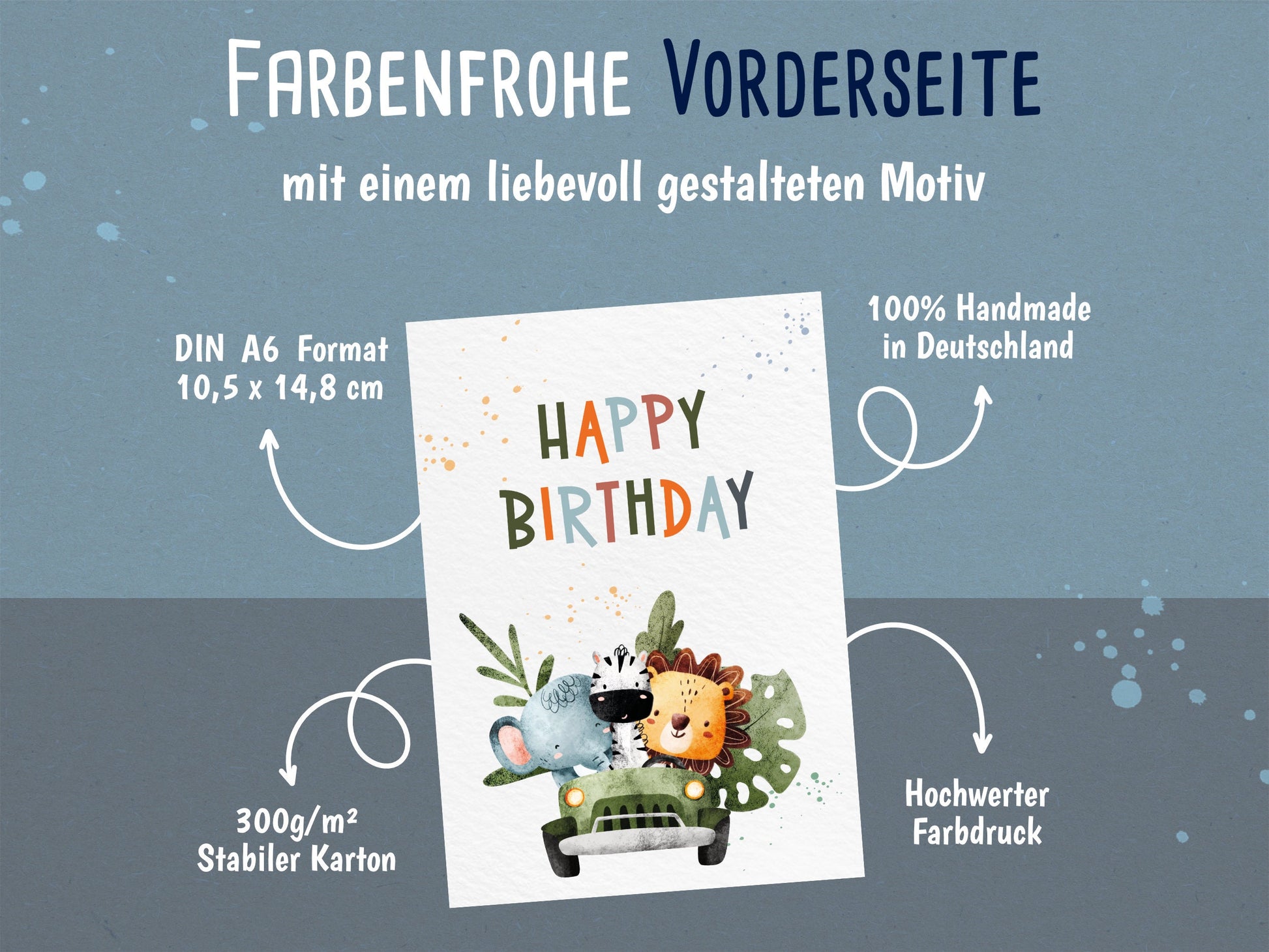 Diese Safari-Karte bringt Geburtstagsfreude direkt aus dem Dschungel – wild, bunt und mit ganz viel Herz!